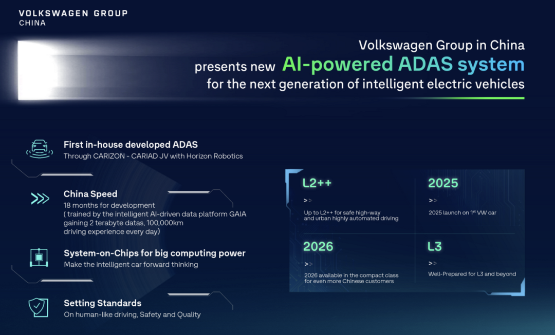 从底层算力到上层算法,大众将实现从定义到验证的全流程本地闭环,极大缩短研发周期并提升对中国用户场景的适配性。