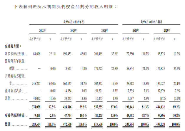 德镁医药的收入,主要包括皮肤处方药的销售、皮肤学级护肤品的销售。
