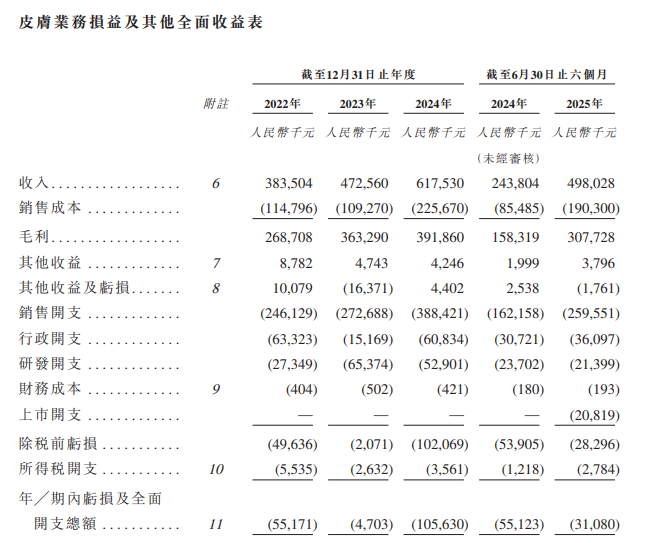 招股书显示,在过去的2022年、2023年、2024年和2025年前六个月,德镁医药的营业收入分别人民币3.84亿、4.73亿、6.18亿元和4.98亿元,相应的净亏损分别为人民币5,517.1万、470.3万、10,563.0万和3,108.0万元。