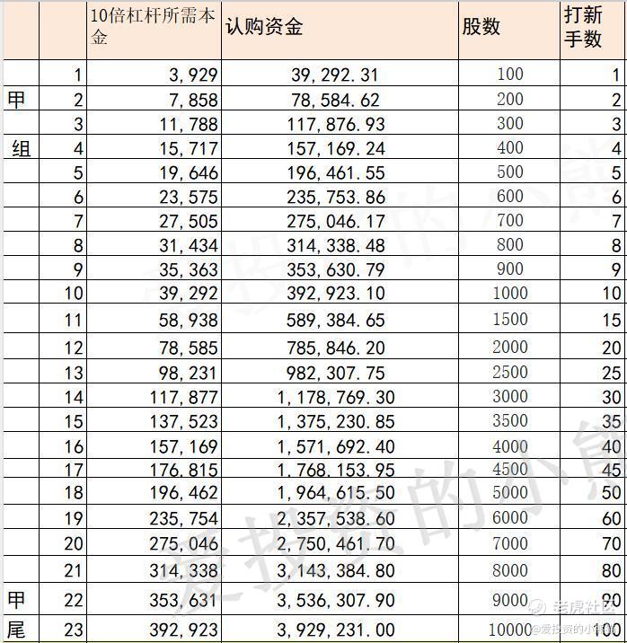 甲组的各档融资所需要的本金还有融资金额对应如下表:
