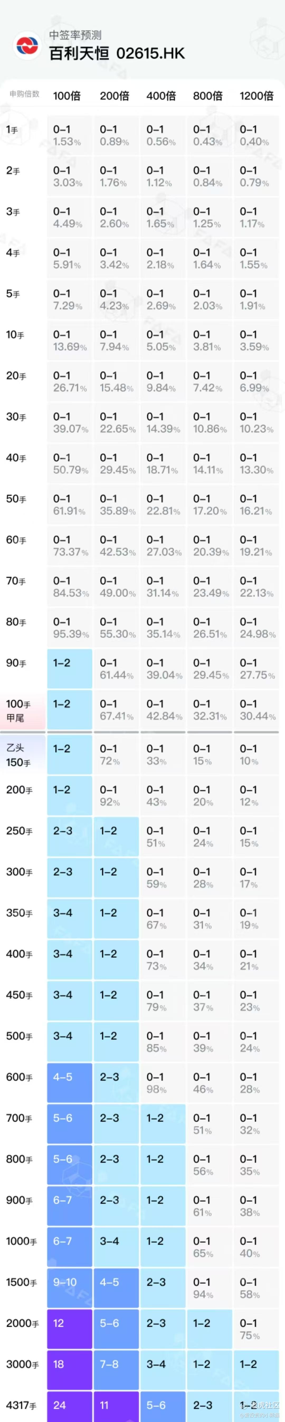 这一次我觉得要超100倍都很难了,真的要注意,中签会有很多货,可以参考之前的文远和小马智行。文远知行这个中签率分布也是很诡异的,甲尾有66手,直接给了23万的货,乙头92手,直接33万的货,风险也不小。