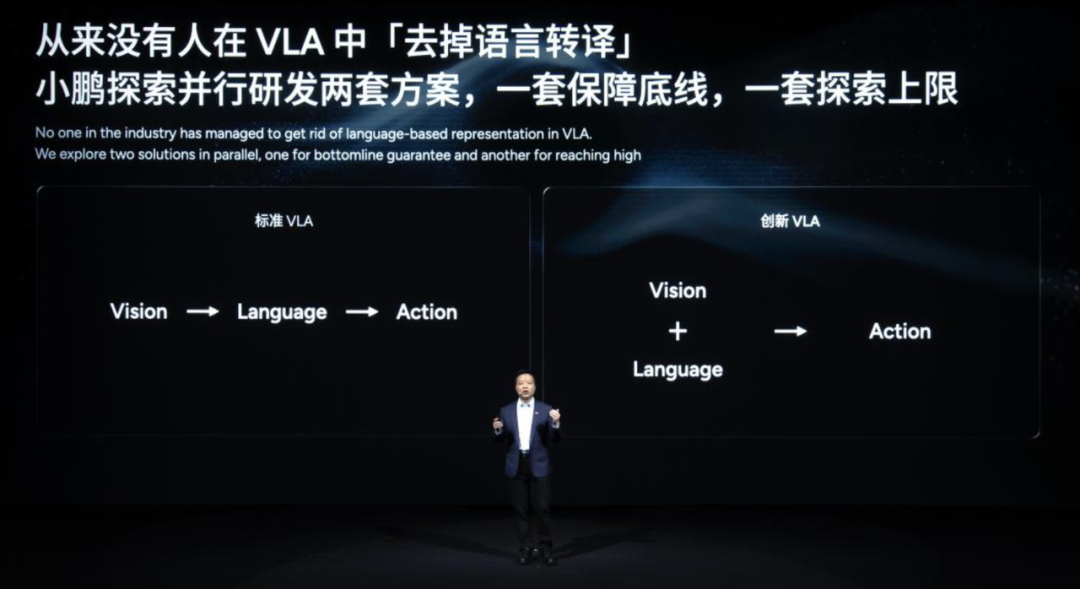 小鹏第二代VLA选择的路线,去除语言中介,实现“视觉→隐式Token→动作”的架构。