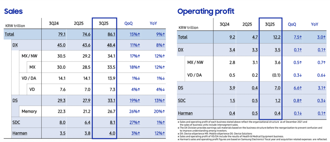 2025年第三季度,三星电子迎来业绩的显著回升: