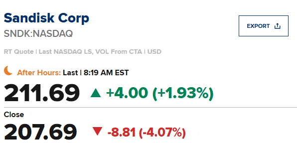 Sandisk(SNDK)第一季度每股收益为1.22美元,比市场预期值0.88美元高出0.34美元;营收同比增长22.6%至23.1亿美元,市场预期值21.5亿美元。该公司上调了第二季度业绩指引,预计每股收益为3.00- 3.40美元,市场预期值1.82美元;预计第二季度营业收入为25.5 - 26.5亿美元,市场预期值23.6亿美元。