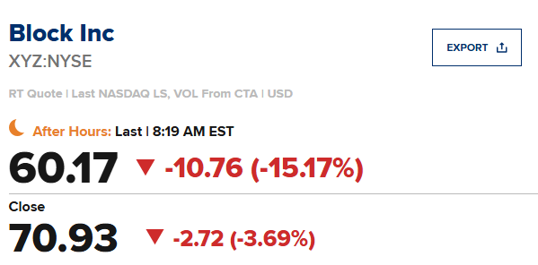 Block(XYZ)第三季度每股收益为0.54美元,比市场预期值0.64美元低0.10美元;营收同比增长2.3%至61.1亿美元,市场预期值63.1亿美元。