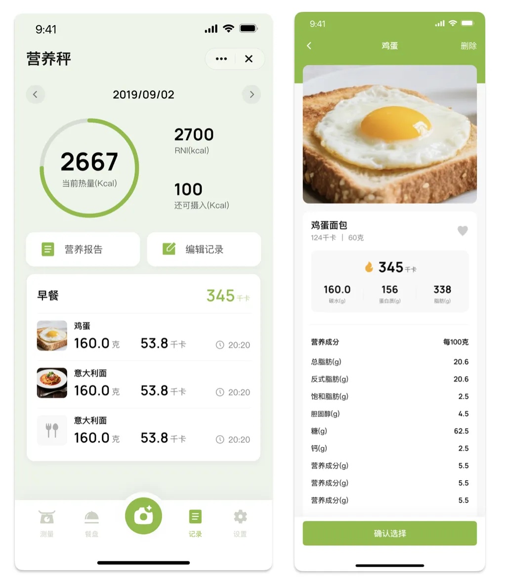 (涂鸦赋能 AI 食物秤营养分析界面)