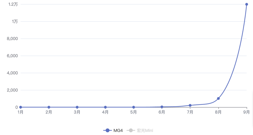 ◎ MG4成为本月最具看点的新晋车型,销量达1.2万辆,同比暴增750%,环比更高达1081%。