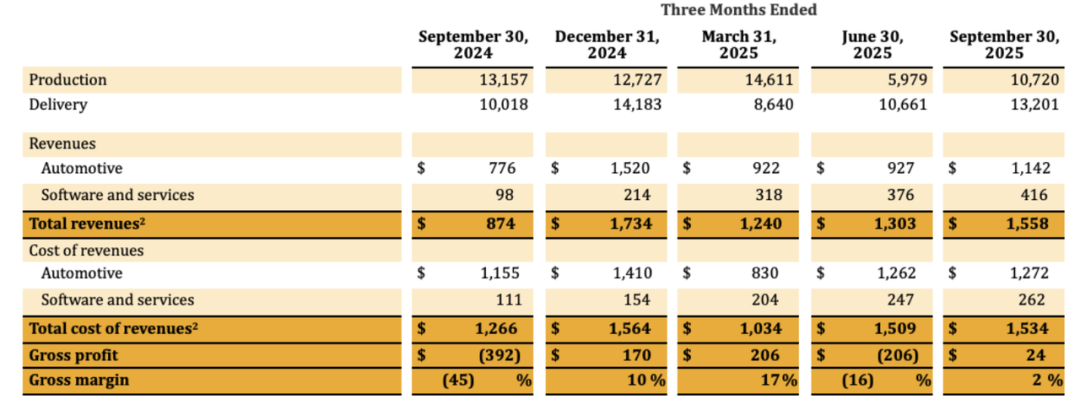 收入方面,Rivian的表现同样优于预期。三季度总营收15.6亿美元,高于市场预估的14.9亿美元,其中: