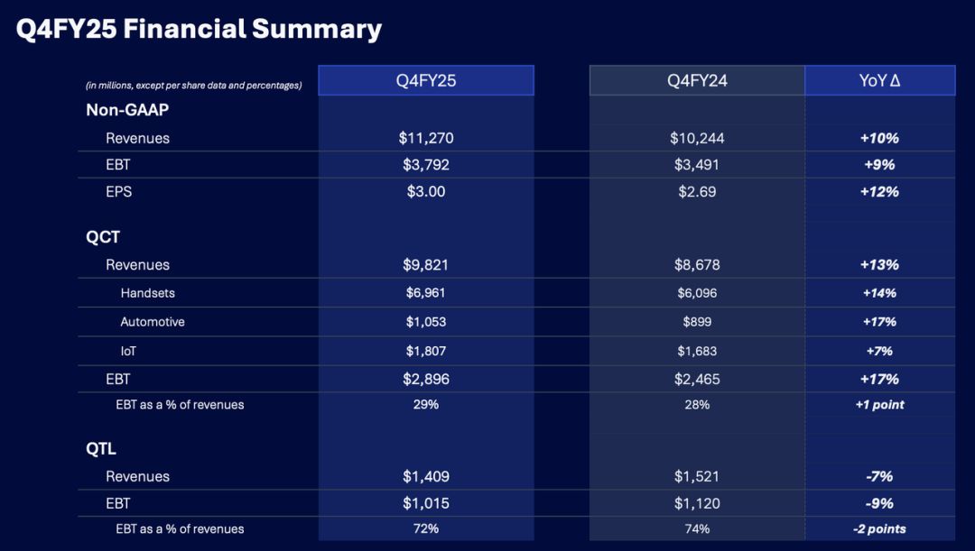 这一展望表明,高通管理层对下阶段出货与需求复苏信心充足,尤其是对高端智能终端与汽车市场的延续性增长充满预期。
