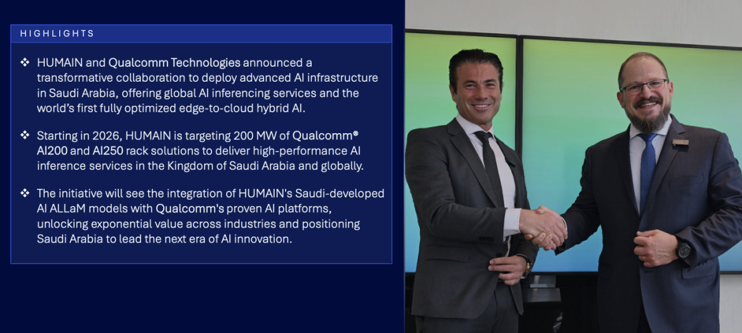 首个客户已浮出水面——沙特人工智能公司Humain将于2026年部署基于高通AI200的计算集群,规模高达200兆瓦。