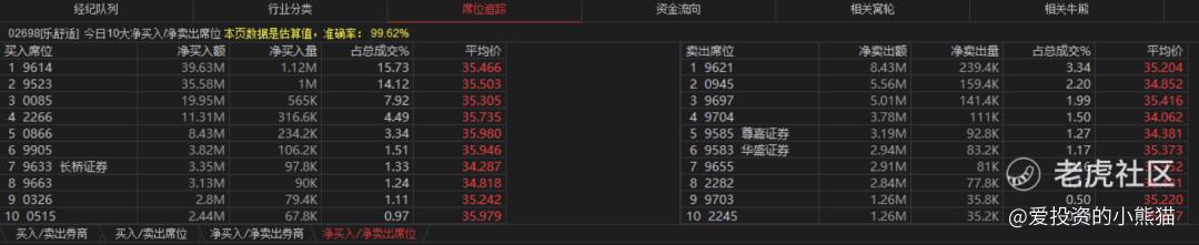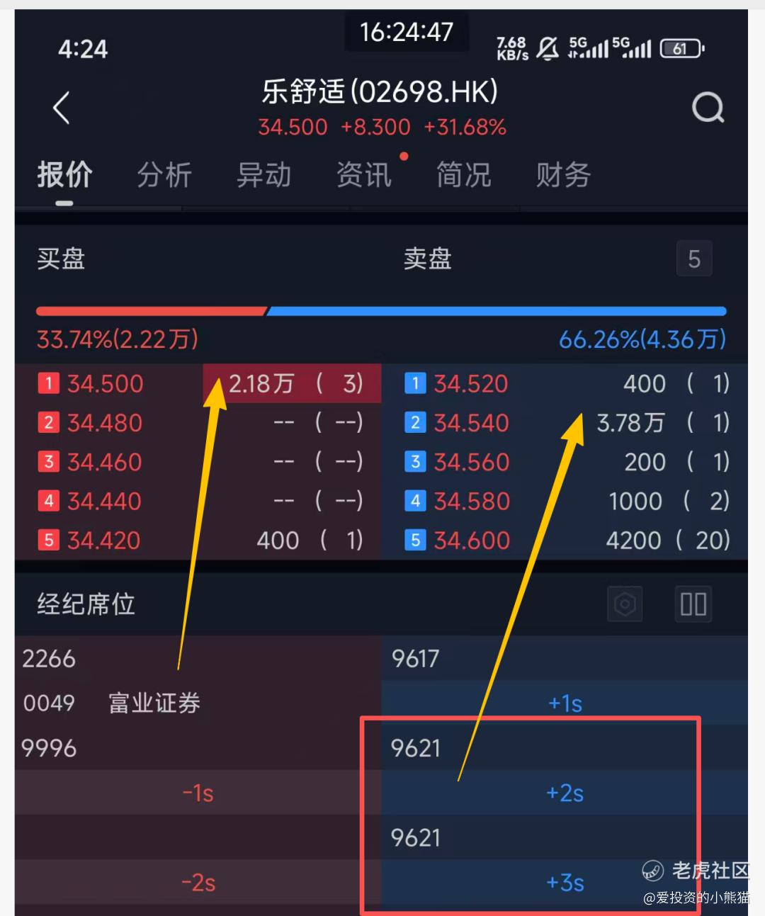 乐舒适(02698.HK)买盘席位有9614、9523、0085、2266等,卖盘第一席位是9621, 0945在卖盘第二席位。