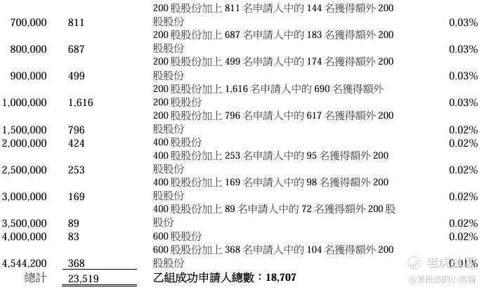 $乐舒适(02698)$ 这个票因为募资额很大,所以中签的比较好中,各个档位基本上都很线性化了没有什么甲尾的优势,乙组也还行,这个票已经算是最近这一系列b10制度下的新股里面比较好中签的票;