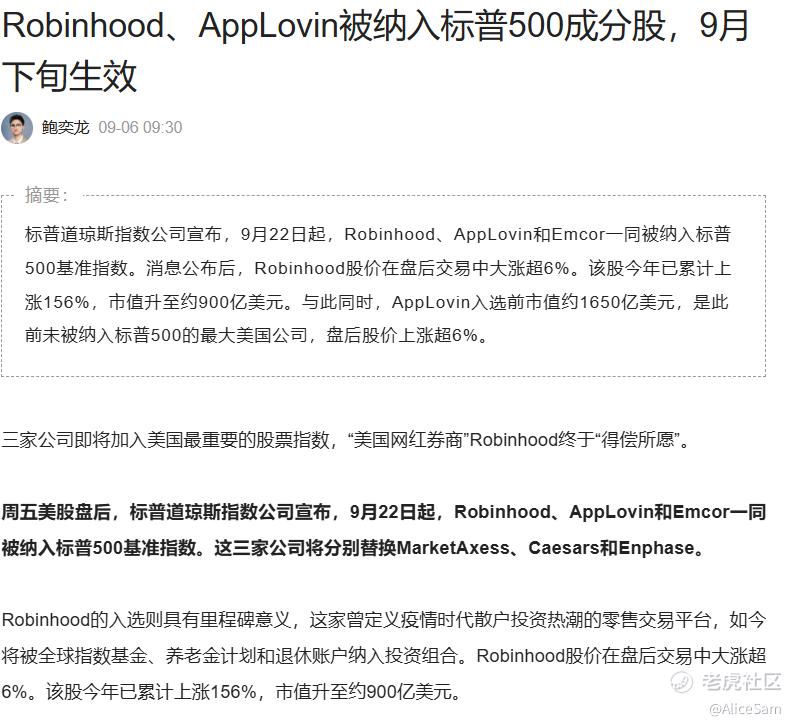 美国互联网券商Robinhood,自从成功上市后,各种剧情不断,充分地展示了其“网红”的特色,从跳水到暴力拉升,到被纳入标普500,一路大涨大跌的,行情极度刺激, $Robinhood(HOOD)$ 这个新型券商,已经成为业界一支市场不可小觑的力量。