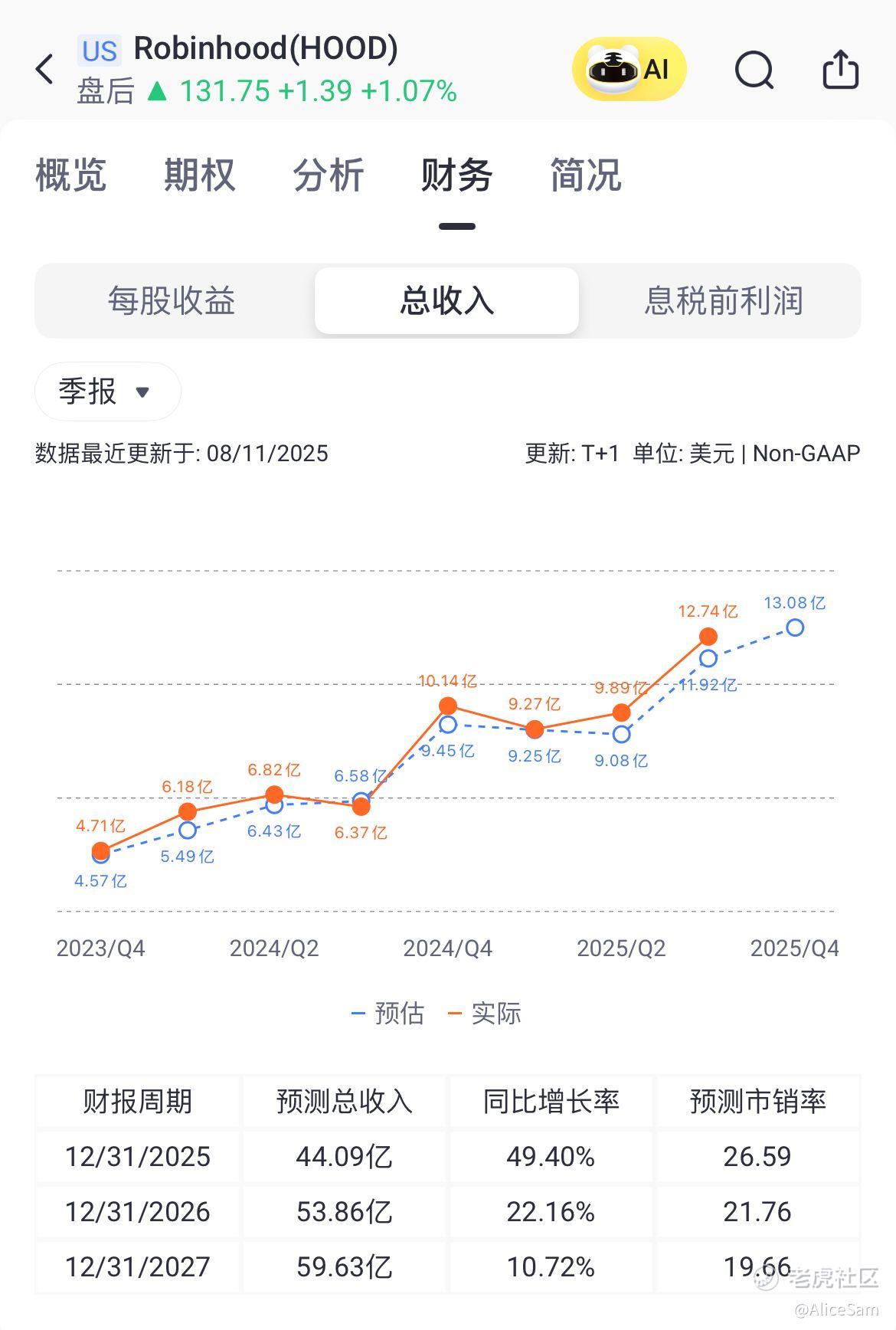 然而,随着业务扩张,运营支出压力上升,监管风险、市场波动、技术安全等因素仍需持续关注。例如预测市场与Robinhood Ventures的商业化进展,国际业务(尤其是欧洲)的用户增长与盈利能力,加密市场的监管动态对Bitstamp业务的影响,等等。