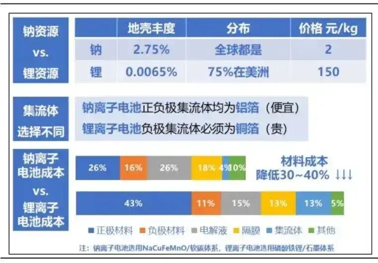 这场资源革命带来的是成本的颠覆性下降。业内测算显示,钠电池正极材料采用层状氧化物,负极使用硬碳,原材料成本比锂电池低40%。当规模化量产后,钠电池电芯成本可降至0.3元/Wh,相比磷酸铁锂电池直降30%以上。