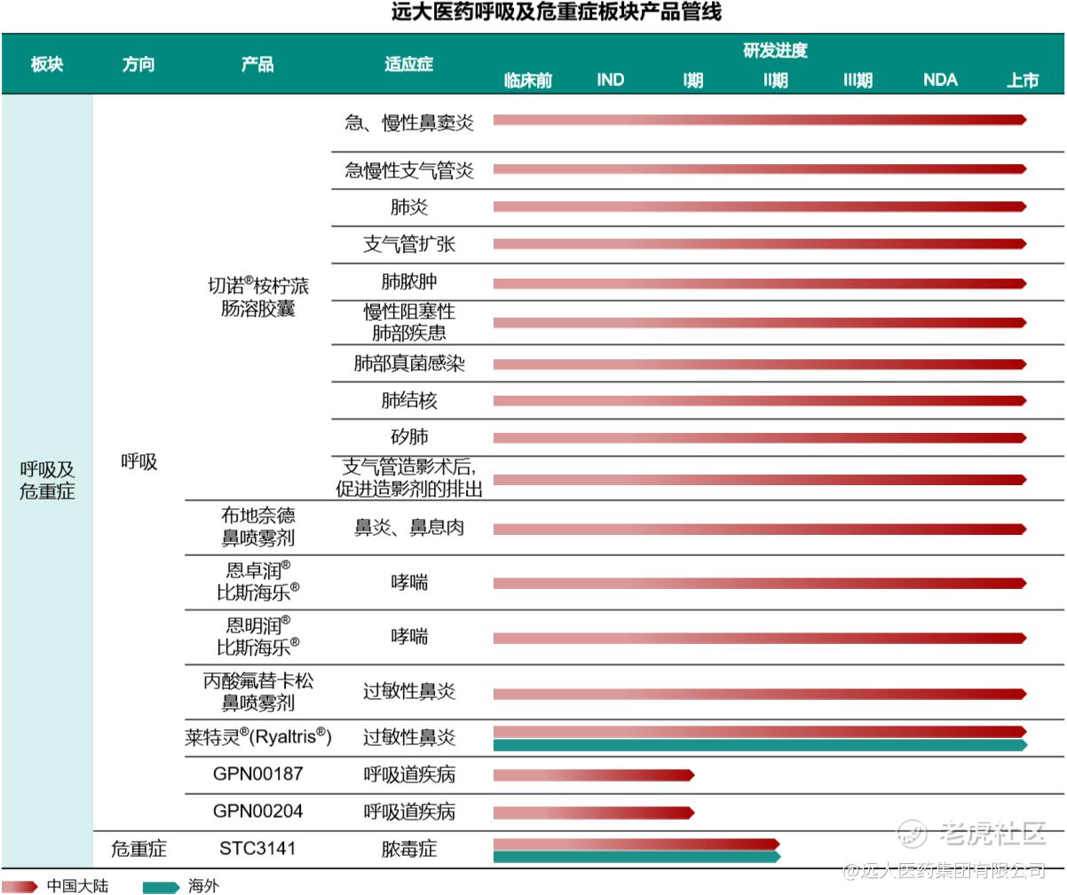 在研产品方面,本集团针对未被满足的重大临床需求进行创新布局,已有多款在研产品覆盖脓毒症、急性呼吸窘迫综合征(ARDS)、鼻窦炎等。[3]