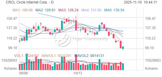 美国“稳定币第一股” $Circle Internet Corp.(CRCL)$ (CRCL)将于2025年11月12日美股盘前公布第三季度业绩。作为全球第二大稳定币USDC发行商,其股价近期在96-106美元区间震荡。