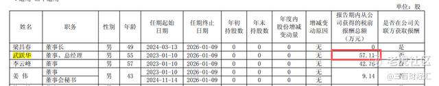 华阳新材年报显示,2024年武跃华在公司领取的薪酬为57.11万元。