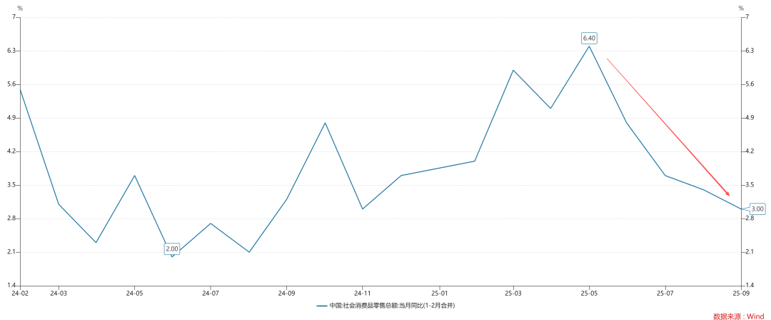 最后,还有一个重要因素在影响市场风向——社会平均风险偏好。当前,社会平均风险偏好十分低,如下图所示,近半年来社零增速持续降低。