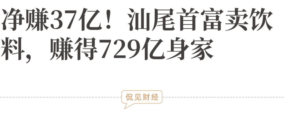 前三季净赚37亿!汕尾首富卖饮料,赚得729亿身家