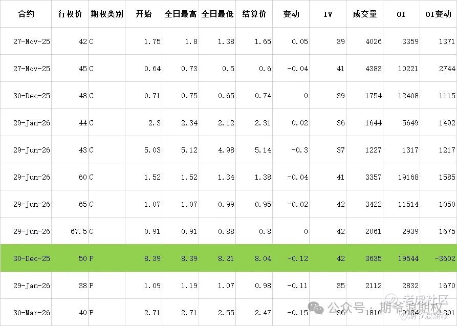 (4)宁德时代:11月最大持仓范围500/550-550,今收548.0,下跌1.88%。期权盘路比较冷清,没有什么特别的。