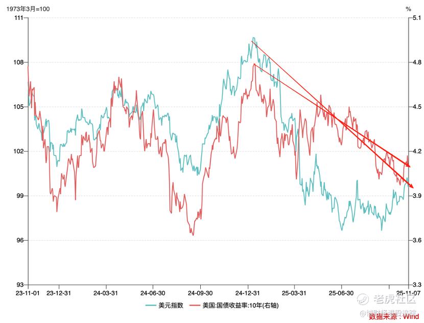 此前资本市场认为美元指数下跌主要是受降息因素影响,但在本文分析框架中,石油价格疲惫则是我们经常忽视但非常重要的一条“暗线”。