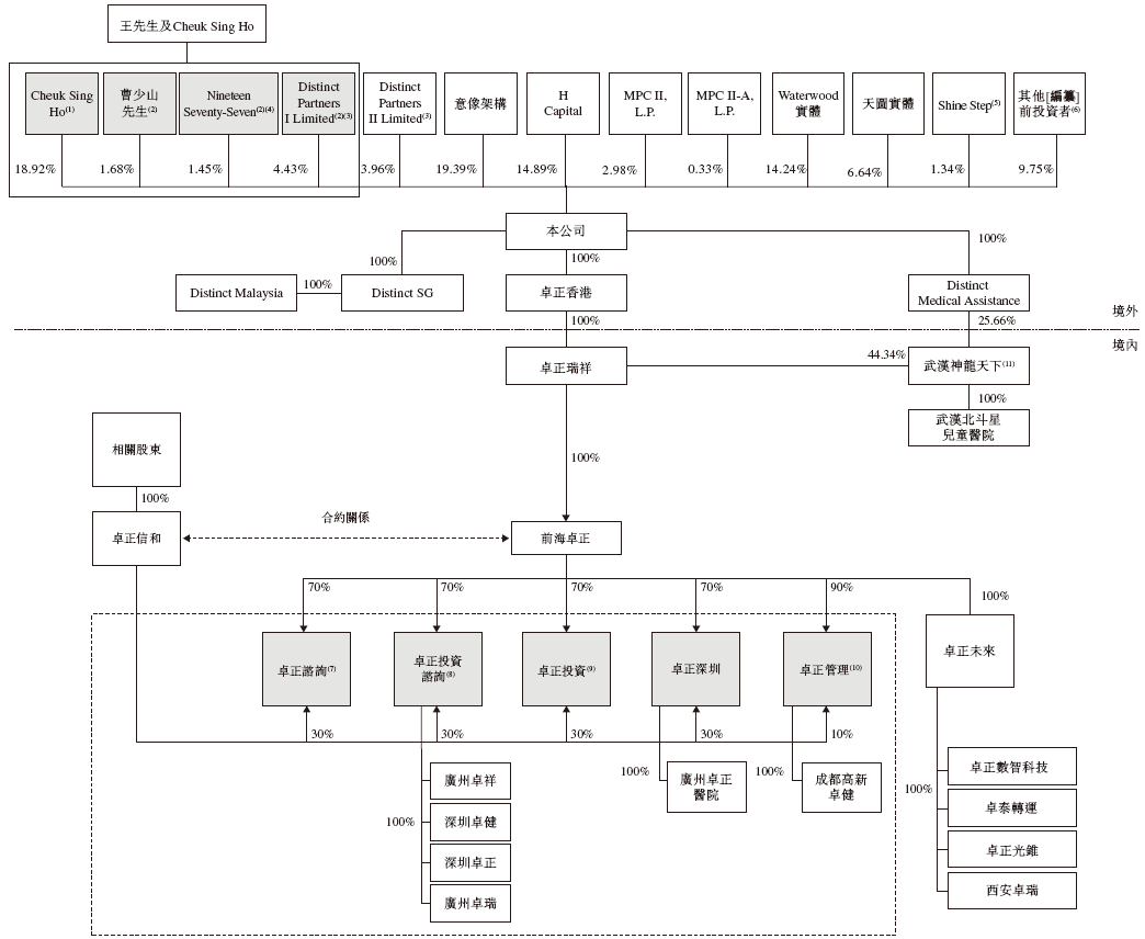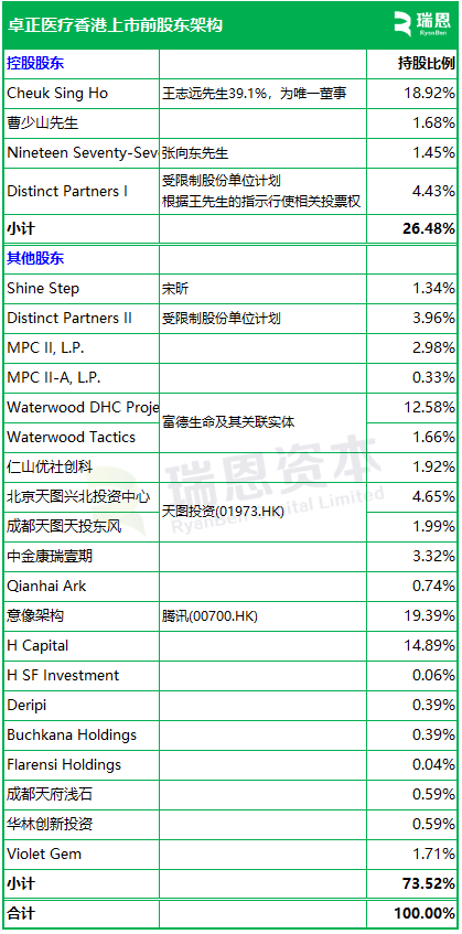 Cheuk Sing Ho的股东:王志远先生、施翼先生、张向东先生、朱岩医生、周方先生、张东生先生、张建新先生,分别持有39.1%、18.4%、2.2%、9.2%、5.1%、1.1%、24.9%的股权。根据Cheuk Sing Ho协议,王先生(作为CheukSing Ho的唯一董事)拥有就公司所有事宜代表Cheuk Sing Ho作出决定及投票的唯一权利及权力。
