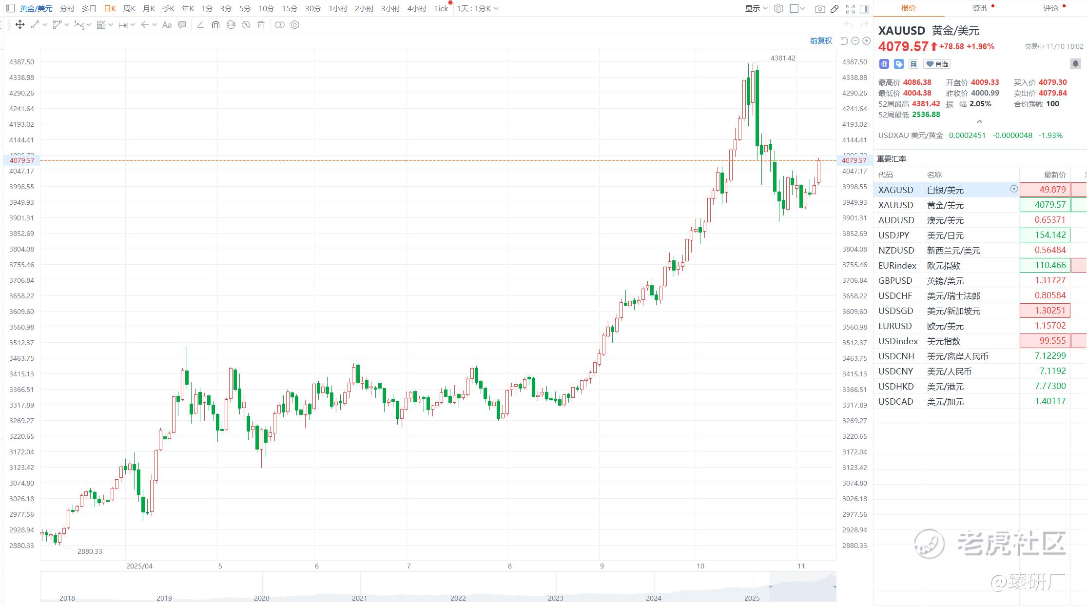 11月10日,黄金市场迎来强势突破!伦敦金现报价冲破4,080美元/盎司,单日上涨2%,创下11月以来新高,业内分析指出,美元走弱、地缘政治紧张叠加美联储降息预期,构成金价长期上涨的核心支撑。对黄金珠宝企业而言,金价与业绩的正相关性已被市场验证,而周六福正迎来“金价上涨+双11大促”的双重利好,其股价潜在上涨空间值得重点关注。