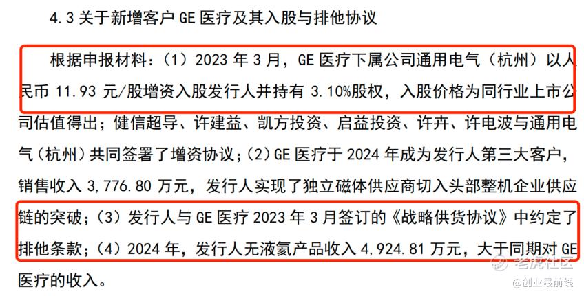 值得注意的是,公司向GE医疗的销售价格低于平均销售价格。不仅给予“优惠价”,为吸引GE医疗,健信超导与GE医疗签署了《战略供货协议》,也就是所谓的“排他协议”。