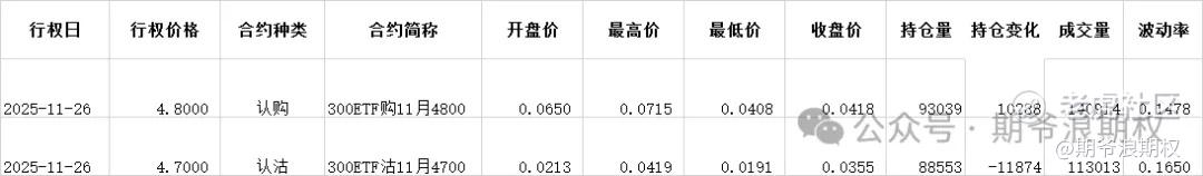 (1)沪深300ETF(沪)期权:11月最大持仓范围4700-4900,今收4.763,下跌0.92%。期权11月主力合约,认购以增仓为主,集中在4700-4900,合计2.0W张;认沽以减仓为主,集中在4500-4800,合计2.1W张。市场总体偏冷清,观望氛围浓,变化超过1W张的仓位如下: