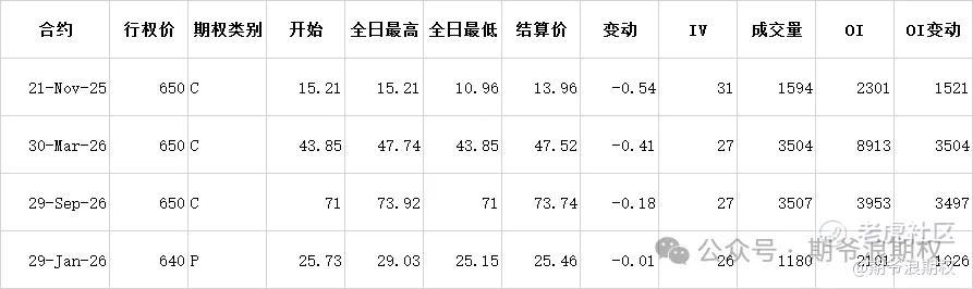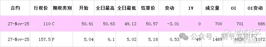 (4)宁德时代:11月最大持仓范围500/550-550,今收542.5,下跌1.00%。期权盘路比较冷清,没有什么特别的。
