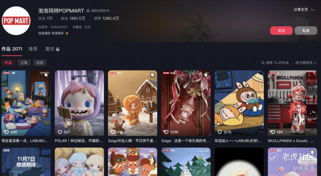也就是说,泡泡玛特的内容,更像是“重营销、轻叙事”的短线思维,距离“世界观”还很远,现有短视频仍停留在“角色表情包”预热,缺乏连续剧情与系统世界观,只维持热度而非沉淀IP资产。
