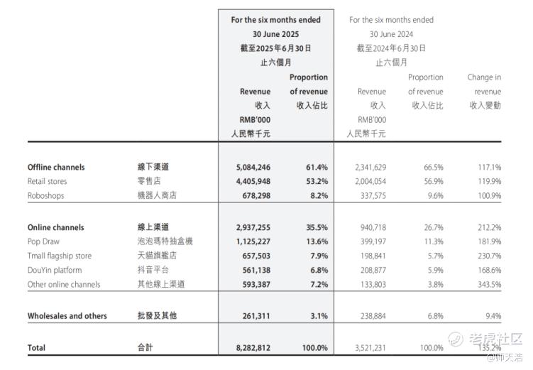 据泡泡玛特2025年中期财报(下文简称财报)报道,截至6月30日止六个月,泡泡玛特收入同期增长204.4%,处在近垄断式的快速增长期。作为潮流文化娱乐的新势力,“内功”修炼的不到位被快速增长所隐蔽。