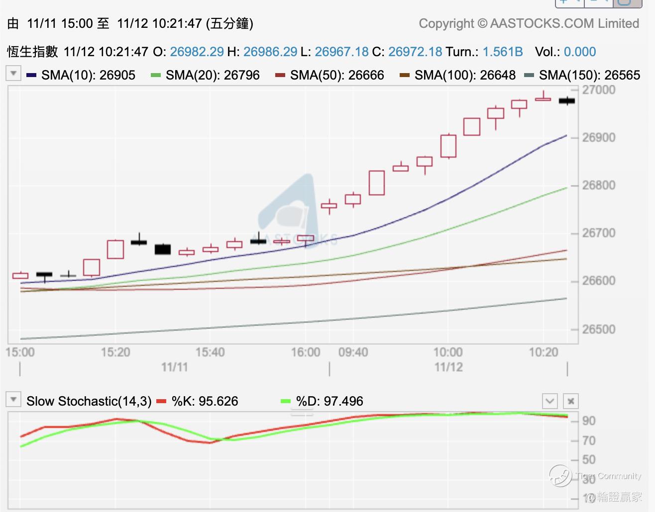 坦白讲恒指呢个势有似攻上27000点,但除咗系博指数向上再杀熊证街货之外,或者要等明日 $TENCENT(00700)$ 等科技股出业绩嚟助佢一把先至有戏睇。