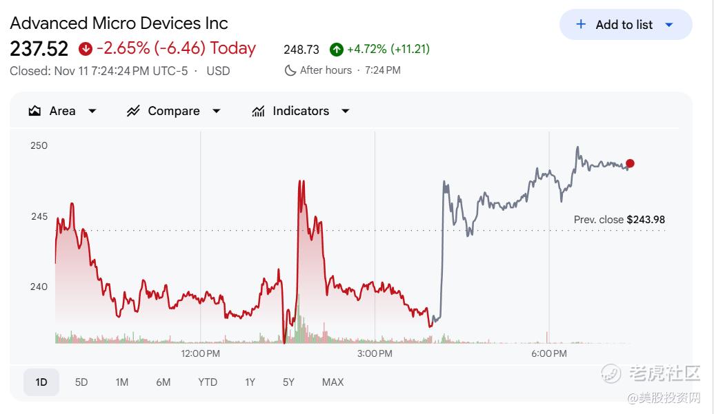 然而,最新的盘后交易数据显示,市场最终还是为管理层的长期乐观展望投下了信任票。在收盘后,AMD股价强劲反弹,涨幅达到4.6%。这表明投资者在消化了短期的季度指引顾虑后,重新聚焦并认可了苏姿丰对万亿TAM和公司高增长前景的坚定信心。