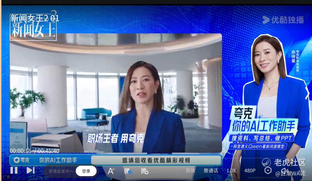 剧情之外,“文慧心”则是化身带货主播,为某款AI办公应用软件打起了广告。