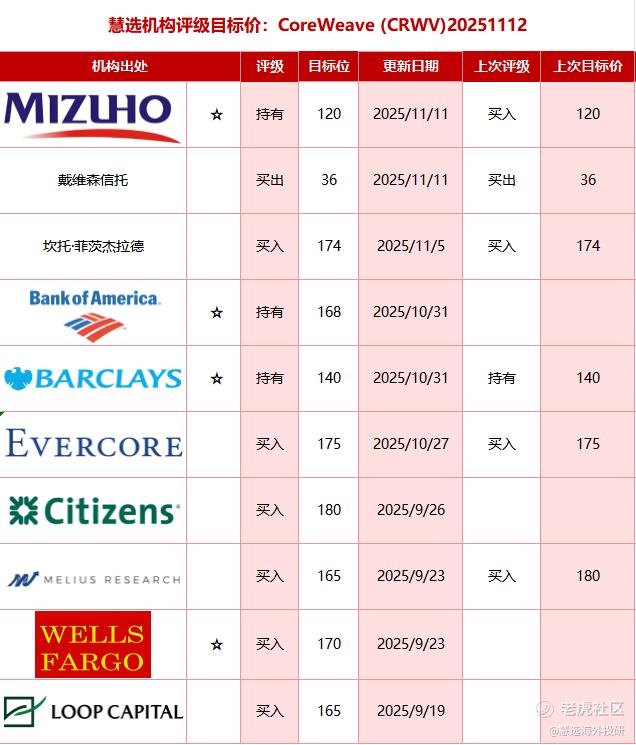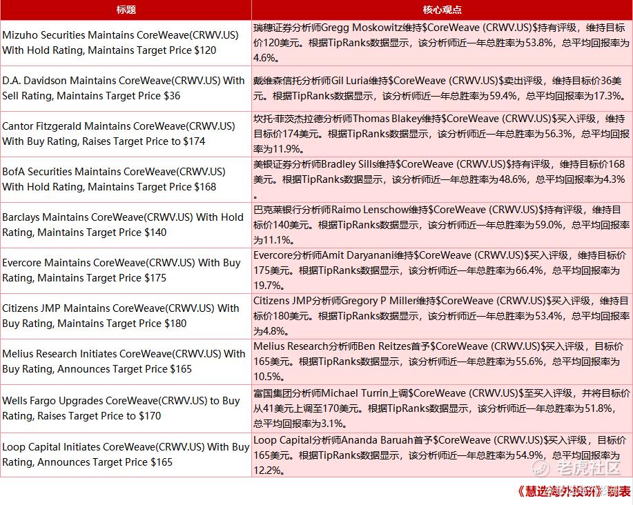 慧选机构评级目标价:CoreWeave(CRWV)20251112