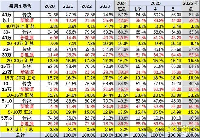 各车型区间销量占比,图源乘联会分会秘书长崔东树个人微信公众号