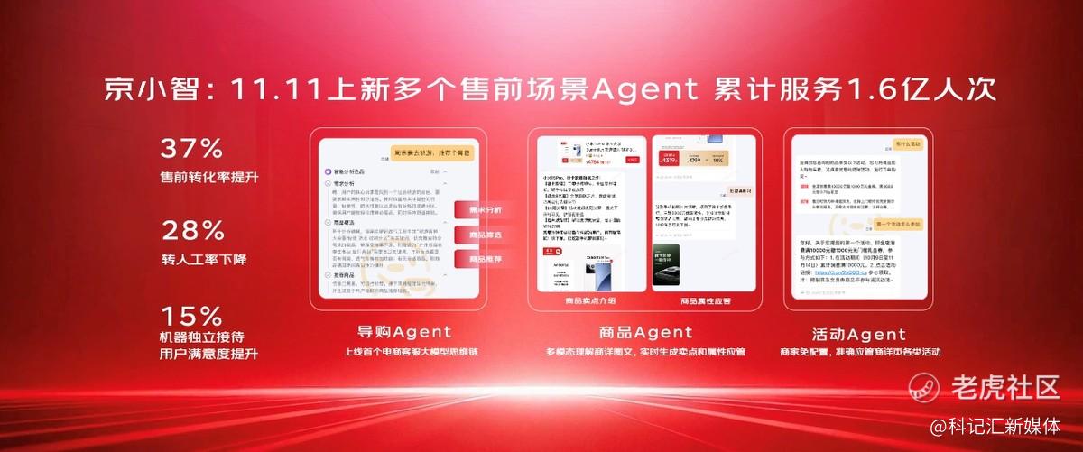 京东探索研究院相关负责人介绍,京东11.11期间,超300万商家借助JoyAI全线产品实现经营升级。数字人直播服务超4万家品牌商,累计带动GMV超23亿元。京小智5.0服务超百万商家,大模型导购服务量达1.6亿次。零售客服全流程接入AI面试,参面率同比提升70%,客服承接能力提升33%。