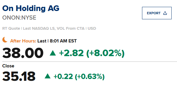 On (ONON)第三季度每股收益为0.43瑞士法郎,比市场预期值0.26瑞士法郎好0.17瑞士法郎;营收同比增长24.9%至7.944亿瑞郎,市场预期值7.696亿瑞郎。该公司上调了25财年业绩指引,预计25财年的营业收入将同比增长34%,至29.8亿瑞郎,市场预期值29.7亿瑞郎,这一数字高于此前预计的31%。