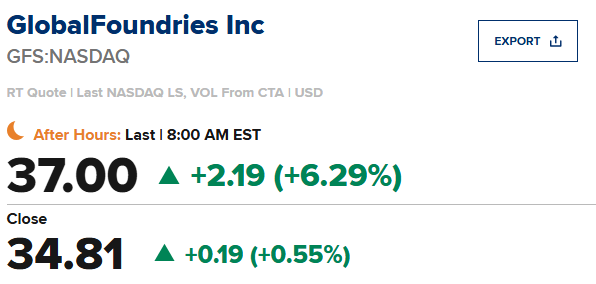 GlobalFoundries (GFS)第三季度每股收益为0.44美元,比市场预期值0.38美元高出0.06美元;营收同比下降2.9%至16.9亿美元,市场预期值16.8亿美元。