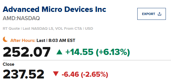 向上跳空:PAL +14.6%, ONON +8.9%, DBVT +8.8%, CAE +7.9%, LPTH +7.3%, UPXI +6.9%, ENLT +6.8%, AMD +5.3%, ALC +4.7%, QUIK +4.3%, PROF +4.1%, VG +4.1%, SMTI +3.4%, TME +3.3%, OKLO +2.9%, HBM +2.8%, DDD +2%, GTN +1.8%, FIVN +1.1%, GPI +1%, AB +0.8%, TSM +0.8%