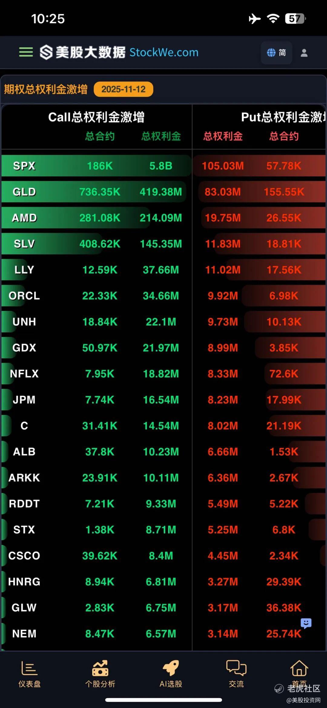 今天根据美股大数据 AI量化交易软件扫描发现黄金 GLD 和白银 SLV 的指数etf有大量看涨期权成交 $SPDR黄金ETF(GLD)$ $白银ETF(iShares)(SLV)$