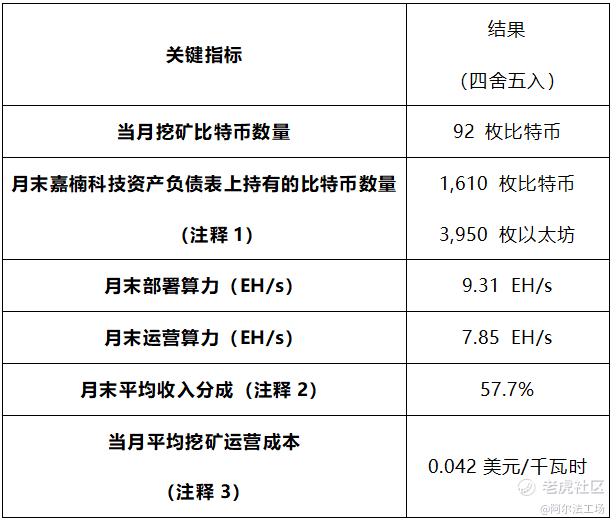 新加坡时间2025年11月12日, 加密货币挖矿领域的创新企业 $嘉楠科技(CAN)$ 公布了2025年10月未经审计的比特币挖矿运营更新数据。