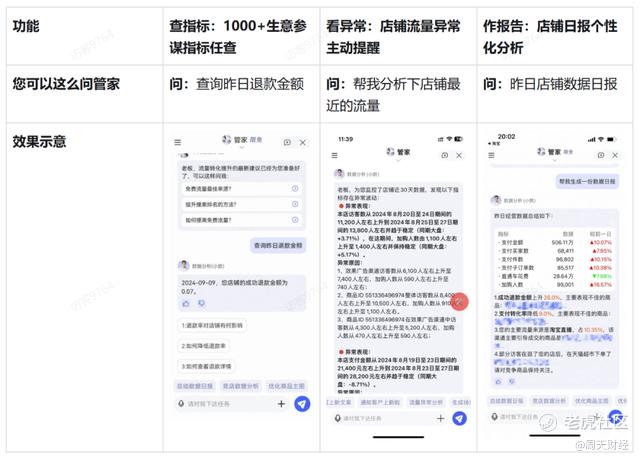 生意管家「大促AI助理」不仅具备数据、营销、客服等Agent能力,更为商家提供大促不同阶段经营解读,诊断经营流失风险及挖掘平台机会。