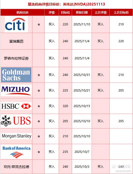 慧选机构评级目标价:英伟达(NVDA)20251113