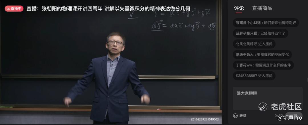 2025年11月2日,张朝阳再次站在搜狐视频直播间的黑板前,一场名为《以矢量微积分的精神表达微分几何》的直播,为《张朝阳的物理课》标记下四周年的清晰刻度。复杂的公式如溪流般缓缓铺展于直播间的黑板,弹幕里,既有「太难了」「虽然听不懂但大受震撼」调侃,也有专业领域的网友针对公式细节、张量与分量等专业名词的认真探讨——这不过是这个持续了四年的「物理实验」中,最寻常不过的一幕。