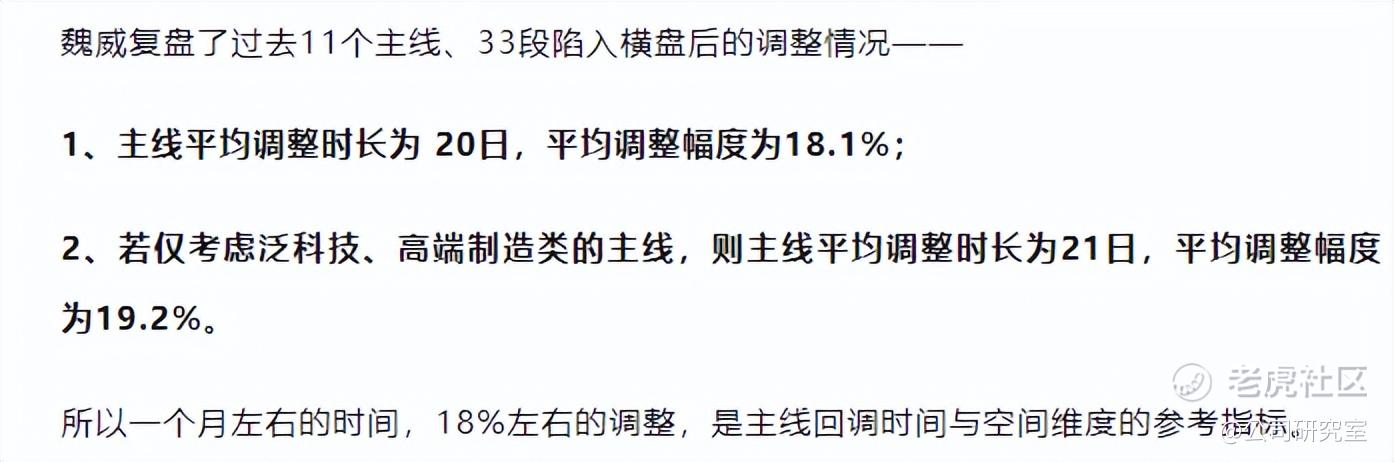 历史数据显示,类似情况下,A股主线平均调整时间大约20个交易日,平均下跌幅度18%左右。若仅考虑泛科技、高端制造类的主线,则主线平均调整时长为21日,平均调整幅度为19.2%。