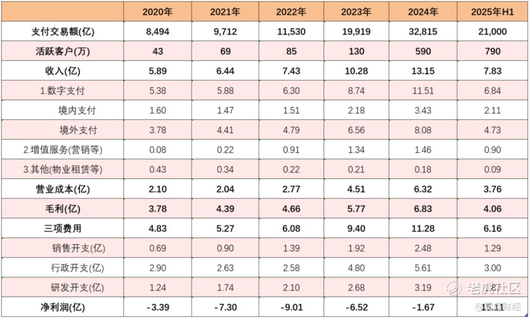 截至2025年6月30日,连连数字的数字支付服务收入为6.8亿元,同比增长26.2%,其中全球支付的收入为4.71亿元,同比增长27%;境内支付的收入为2.1亿元,同比增长24.6%。