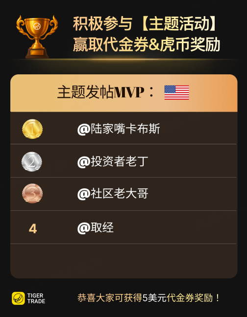 恭喜以下4位小虎,成为上周主题发帖积极&精彩用户,可获5美元代金券奖励![梭哈]